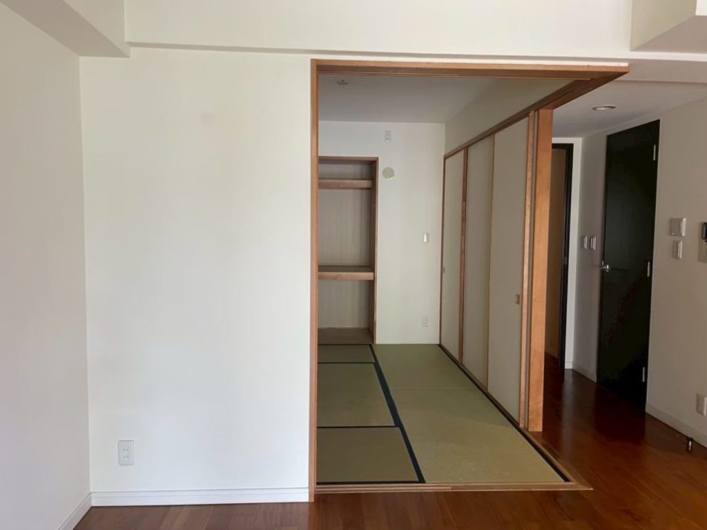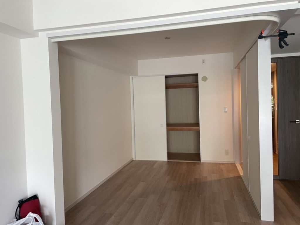 フローリングリノベーション世田谷区 世田谷区W様邸 和室から洋室へリノベーション 投稿:2025年8月26日 施工内容 ・和室から洋室へ間取りの変更 ・ウスイータ(フローリング)張り 担当者コメント 和室から洋室へのリノベーションです。ライフスタイルに合わせ、壁を撤去しリビングと繋げ広々と使えるようになりました! 畳からウスイータ(リフォーム用の薄型フローリング材)に変更したので、建具も洋風に白で統一しました。オシャレな内装工事!お任せください!